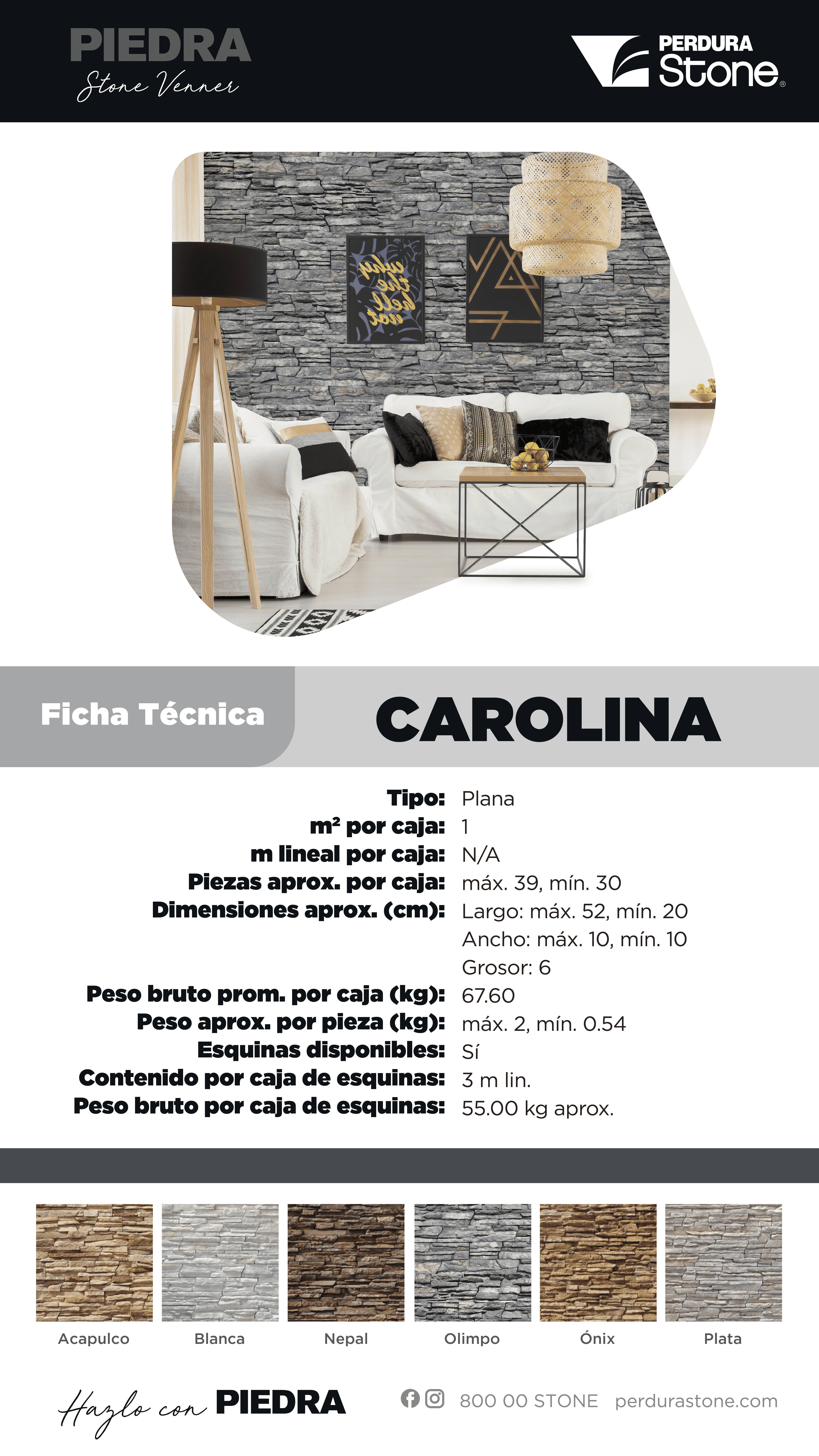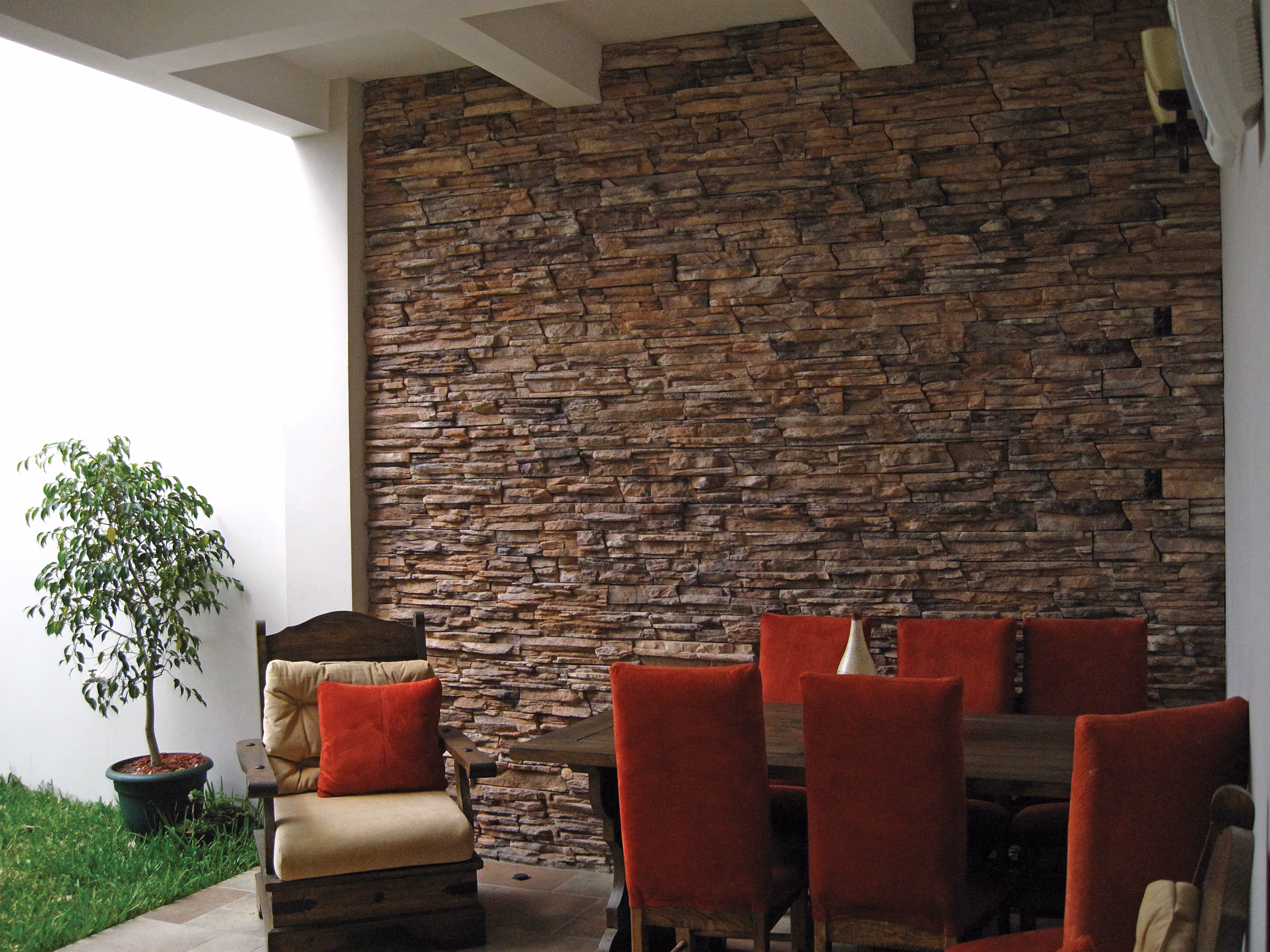 Piedra fabricada de concreto aligerado con pigmentos ferrosos que garantizan un producto de calidad por más de 25 años y texturas que no se pierden y desvanecen.