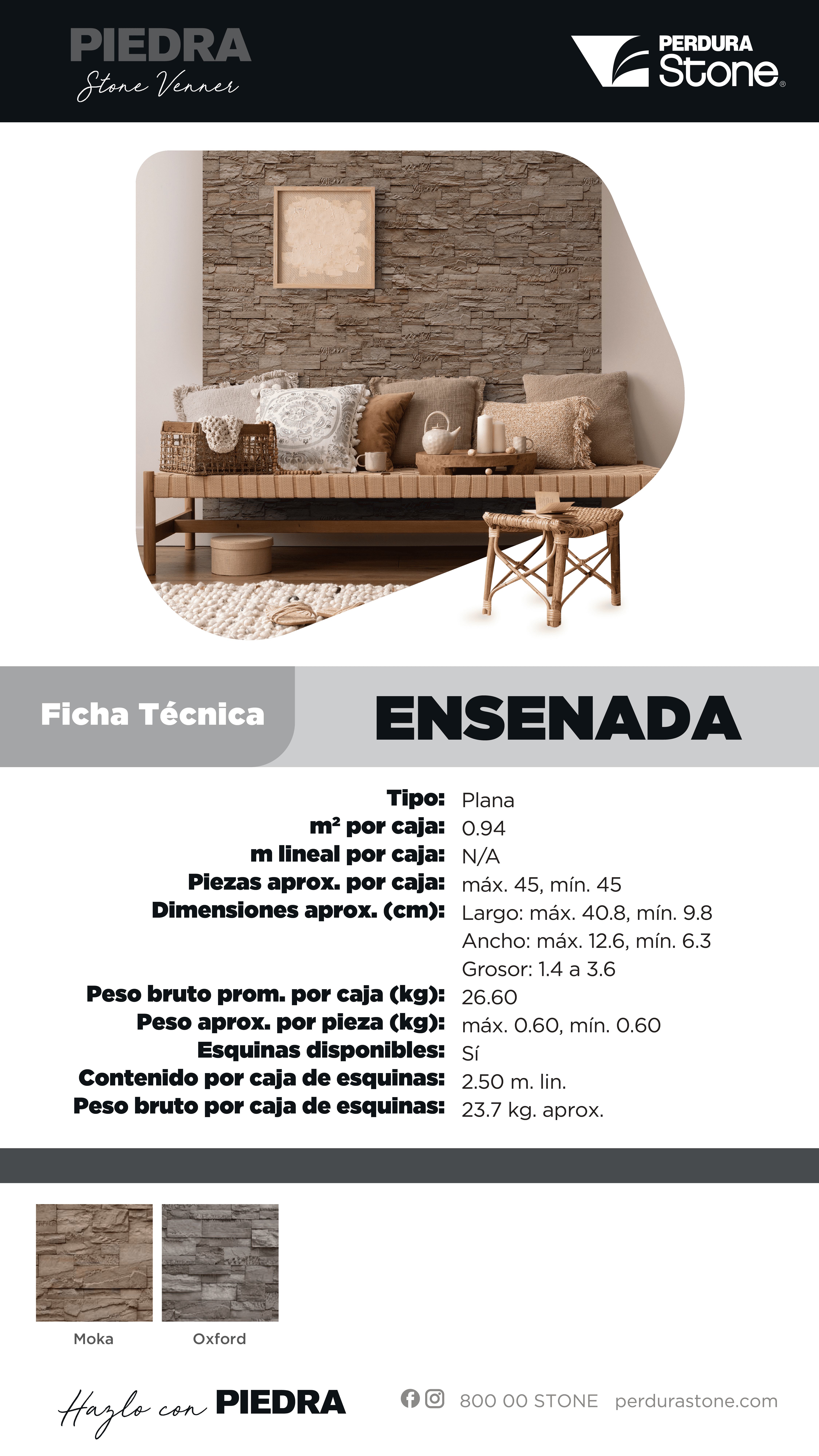 Piedra fabricada de concreto aligerado con pigmentos ferrosos que garantizan un producto de calidad por más de 25 años y texturas que no se pierden y desvanecen.